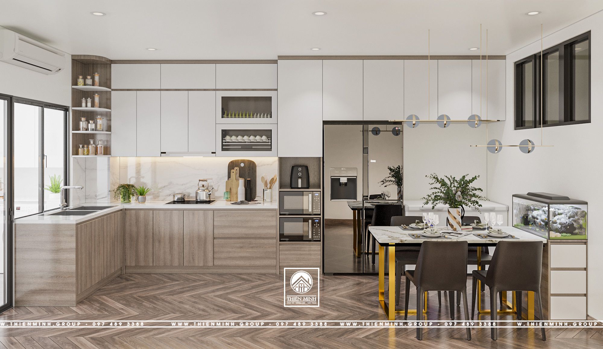 Quý khách hàng có nhu cầu thiết kế, thi công nội thất vui lòng liên hệ theo số hotline: 098 523 0190 / 097 489 3388 hoặc gửi thư về địa chỉ Email: hotline@thienminh.group để được tư vấn.